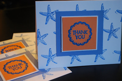 In keeping with our ocean/beachy wedding theme of starfish and incorporating our wedding colors of tangerine orange and ocean blue, I came up with these:
