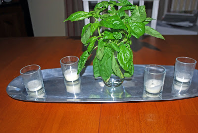 Place fresh cut basil in a bud vase, surround with votive candles.