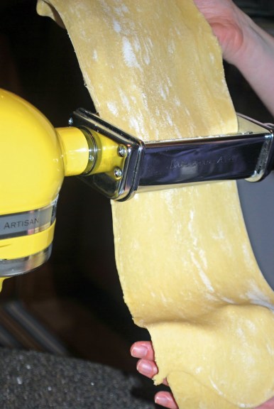 Roll out the pasta dough to desired “thinness” (I went to the #4 because I like a medium-thick fettuccine).