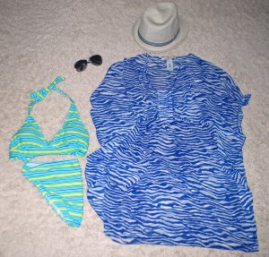 I started the season with an adorable maternity one-piece, but realized I missed the ease of a bikini and once I hit the 5-mos mark of my pregnancy when my belly was truly rounded (and not just chubby looking) I really felt more comfortable in a 2 piece. I ended up with this cute little striped number from Old Navy. Who wants to invest in a bikini that will be stretched out by their growing baby belly? Not me, I spent $12 total on this.