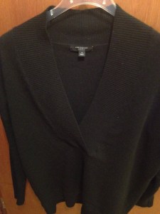 Black, over sized, regularly $228!!, perfect to wear with my red skinny cords and black boots. Hurry to Ann Taylor to see if you can find your own cash”miracle!”