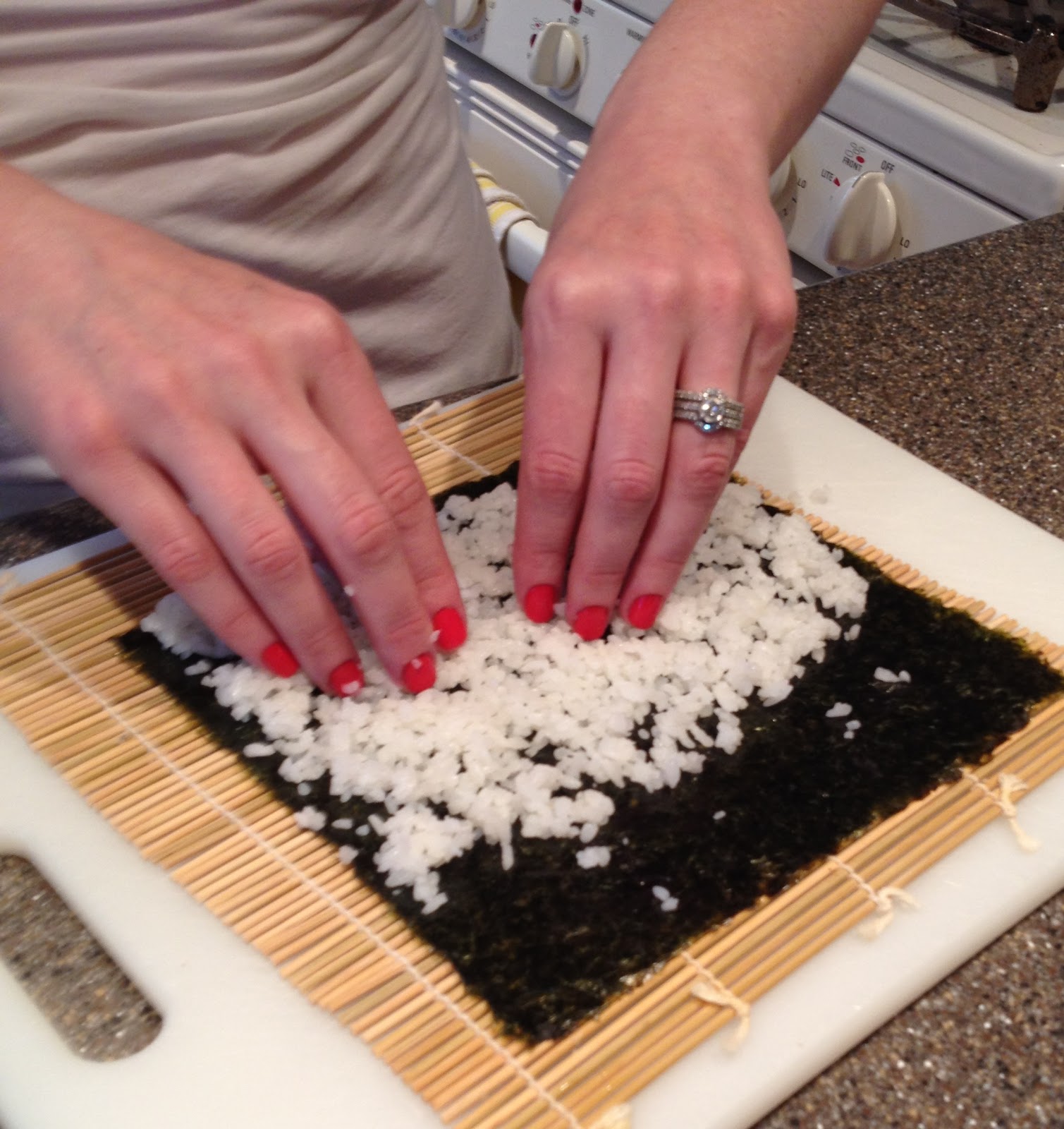 – Definitely visit an Asian market for your fish. You don’t want American grocery store salmon for your sushi rolls, you need sushi grade, of course.