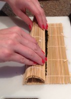Then roll! When you’re all rolled up, squeeze your finished roll a bit to make sure everything is set in place.