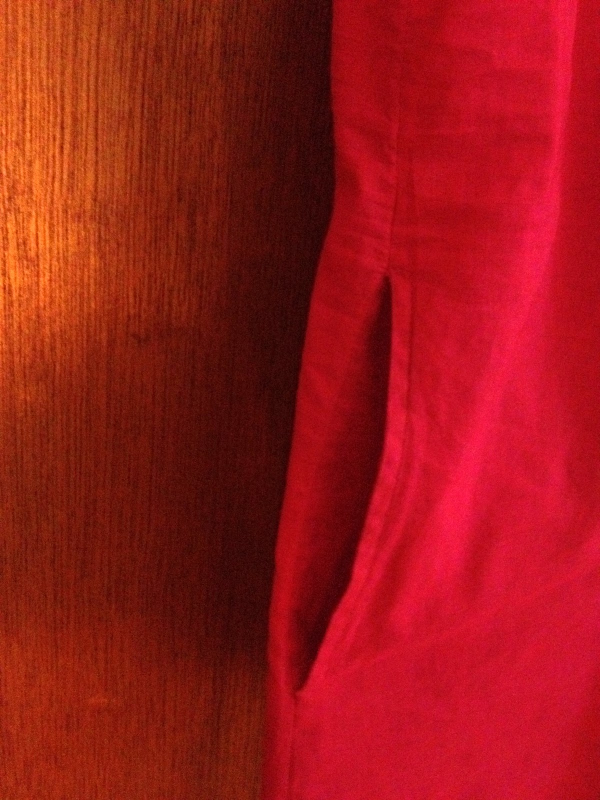 I love that it’s long, has an interesting neckline with the colorful tiny pompoms, and best of all…pockets!