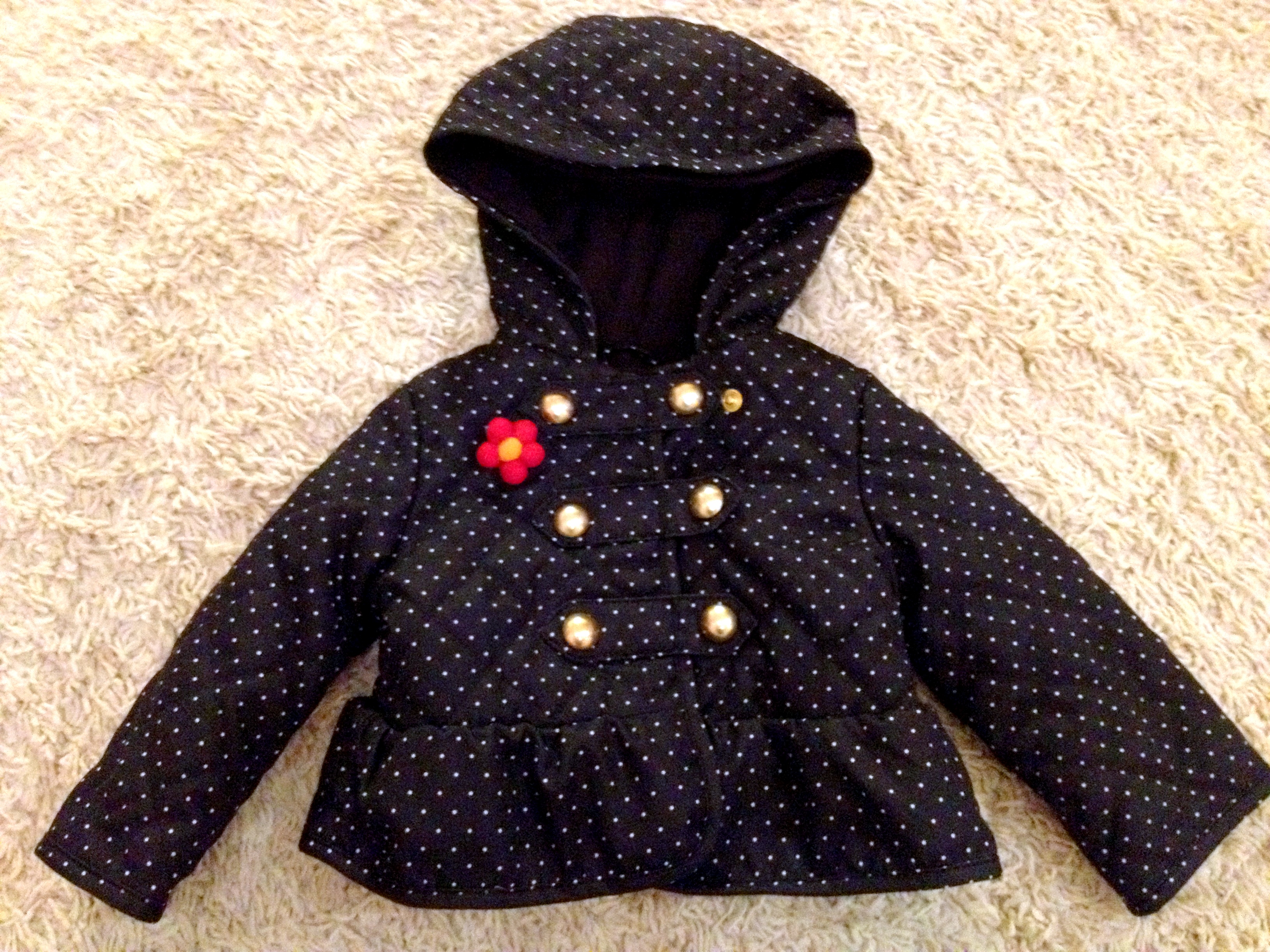 And here’s her little coat with the little flower pin…!