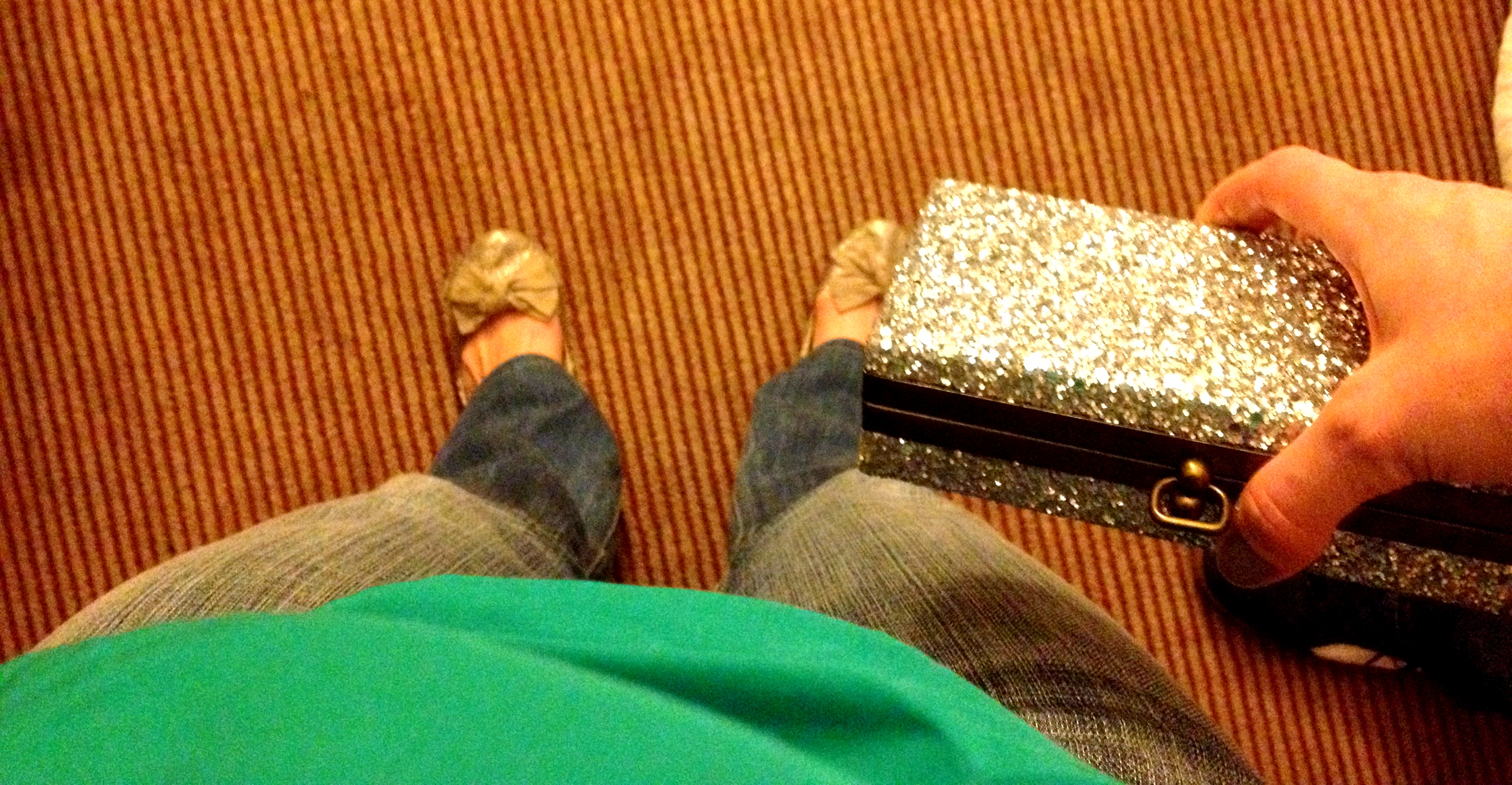 Sparkle purse and this top I got for only $15! I love the color and how it looked tucked in.