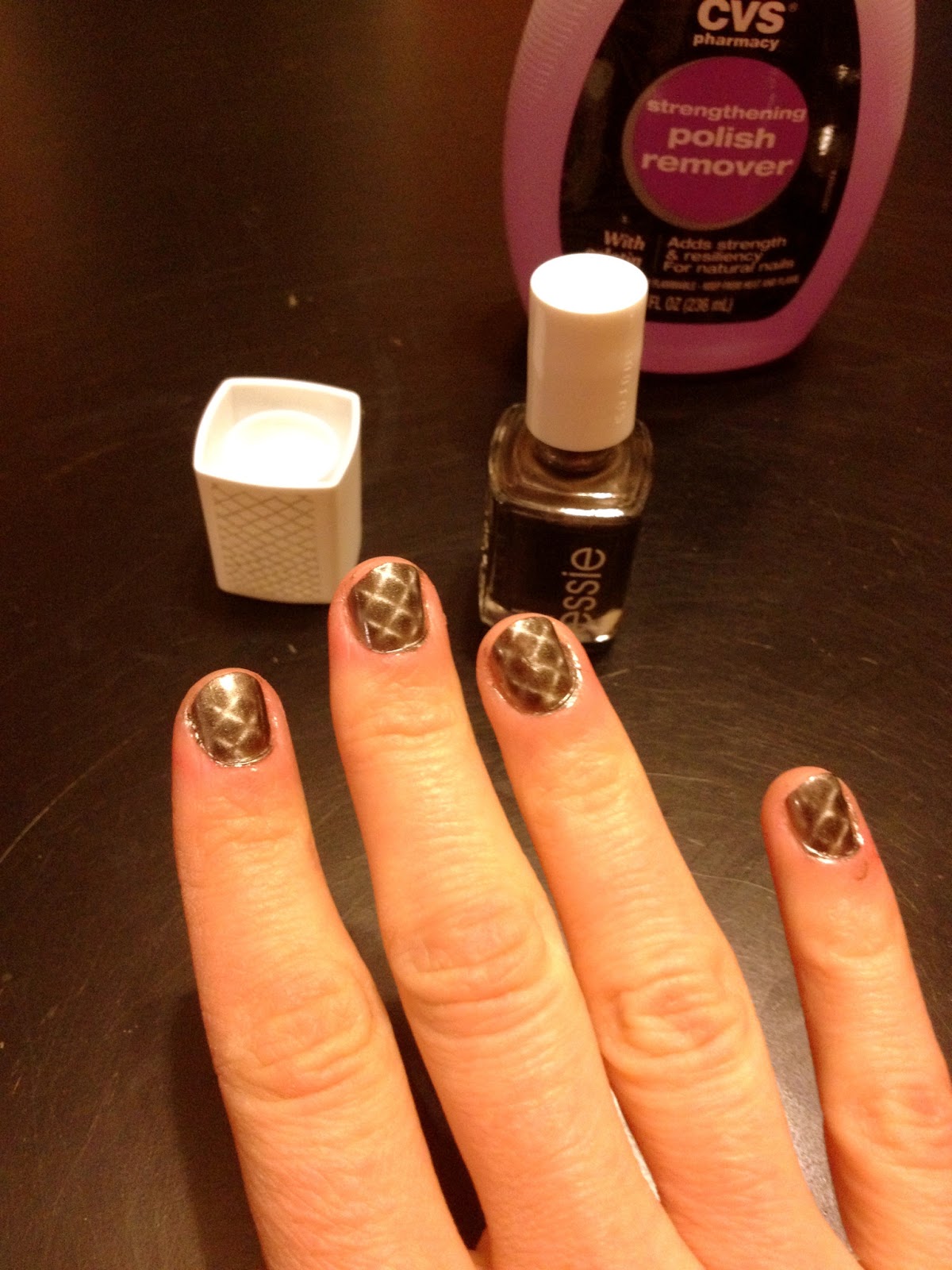 I’ve been seeing essie’s new snakeskin magnetics repstyle line at CVS and Target for a while now and I finally bought a bottle to try. I was very skeptical if it would work or not – you hold the magnetic cover over your nails and it instantly creates this snakeskin pattern – how?! I know patterned nails are big right now and this would be a much easier and less timely way to have interesting nails.