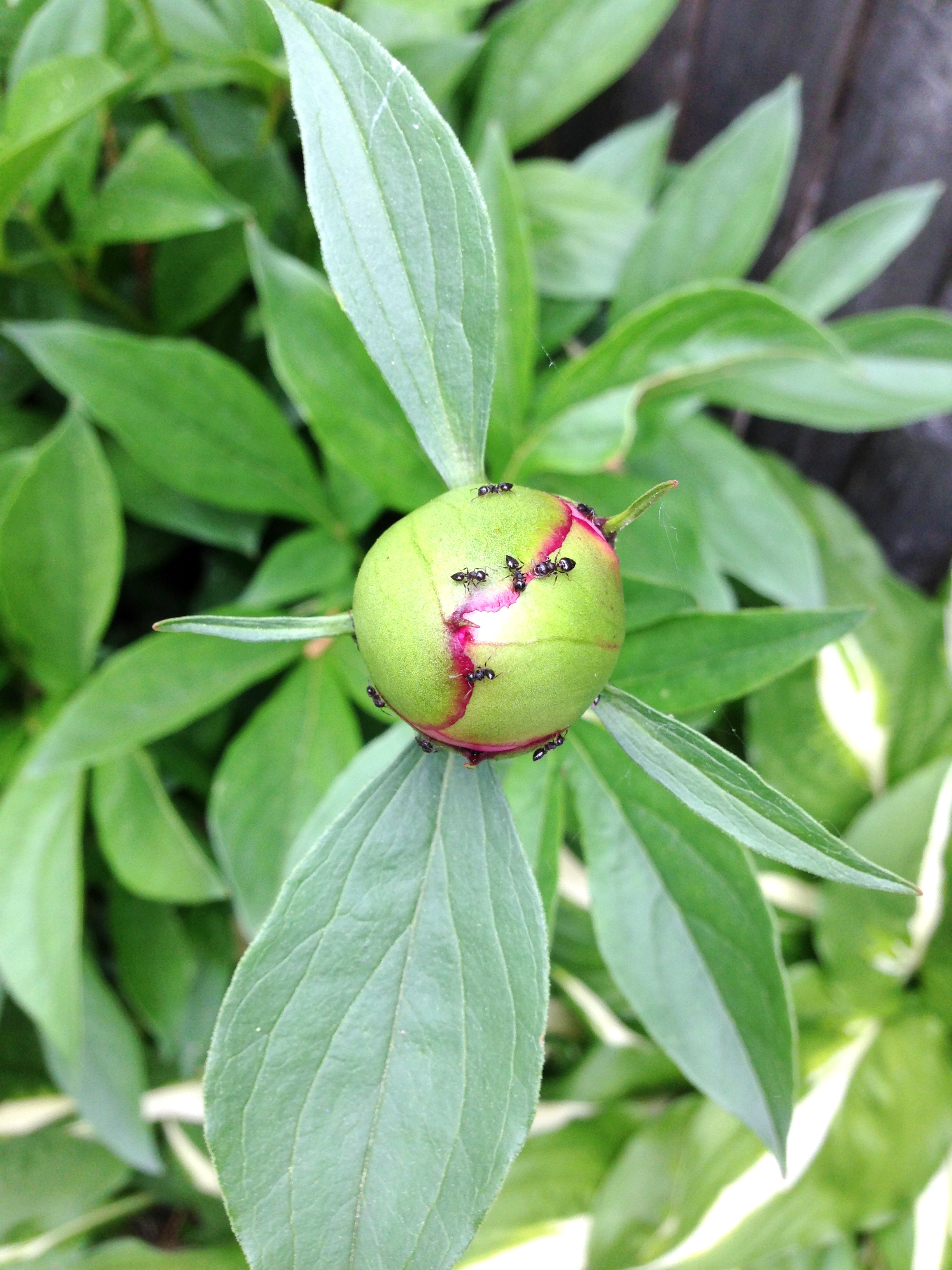 Peonies are just my favorite flower. Here is one plant with the magical ants all over it getting the plant ready to bloom.