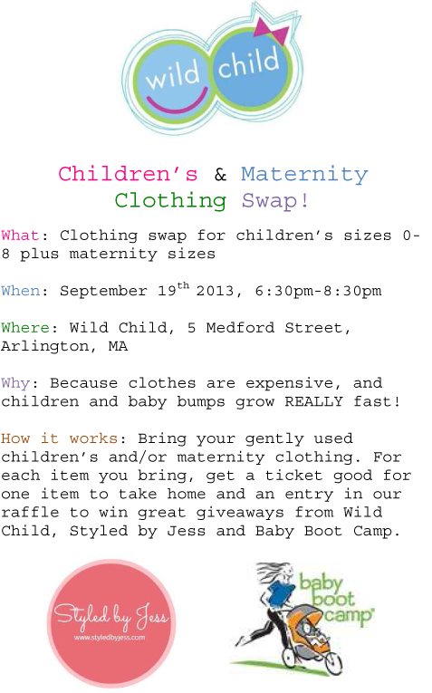 It’s going to be a fun night – I will be there to help you assemble outfits from what you find in the clothing swap. RSVP to the party before September 5th and receive 20% off any full-priced item at Wild Child!