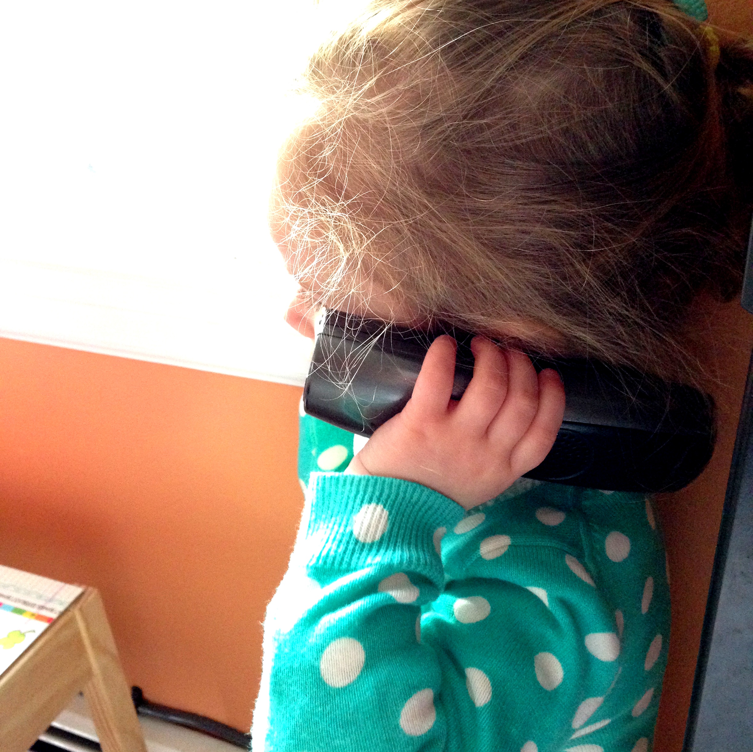 My husband always calls me on his way home from work to chat about our days…but lately someone else has been taking the phone so she can talk to Daddy too.