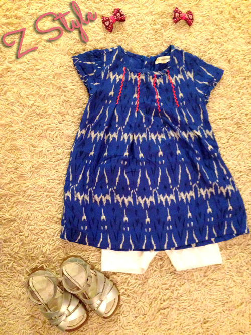 My Z is a girly girl, that comes as no surprise. So, once she realized how much she loved wearing dresses, she has requested them non-stop! Since most of our days include playground and backyard playing (sand! dirt! mud!) they aren’t always the best choice, but she does have a small collection of cute, wear-anywhere dresses. Here is one of her faves: