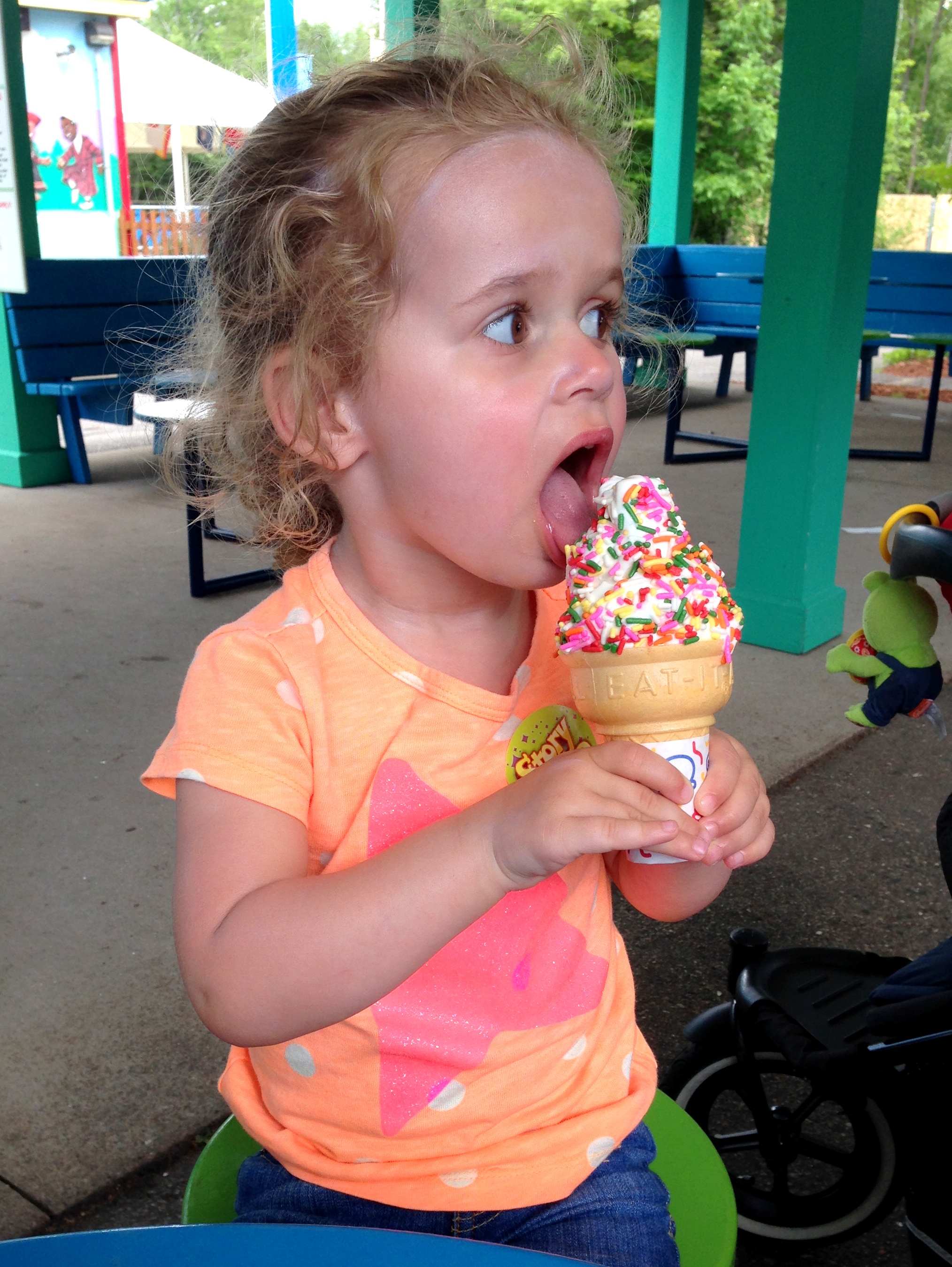 We weren’t quite sure how Z would do, if she’d like the rides or be nervous. So we arrived and started slow with the Storybook section of the park and she could not have been more disinterested. She didn’t seem to be having any fun so we stopped to get an ice cream with sprinkles and we thought that would perk her right up – it didn’t…