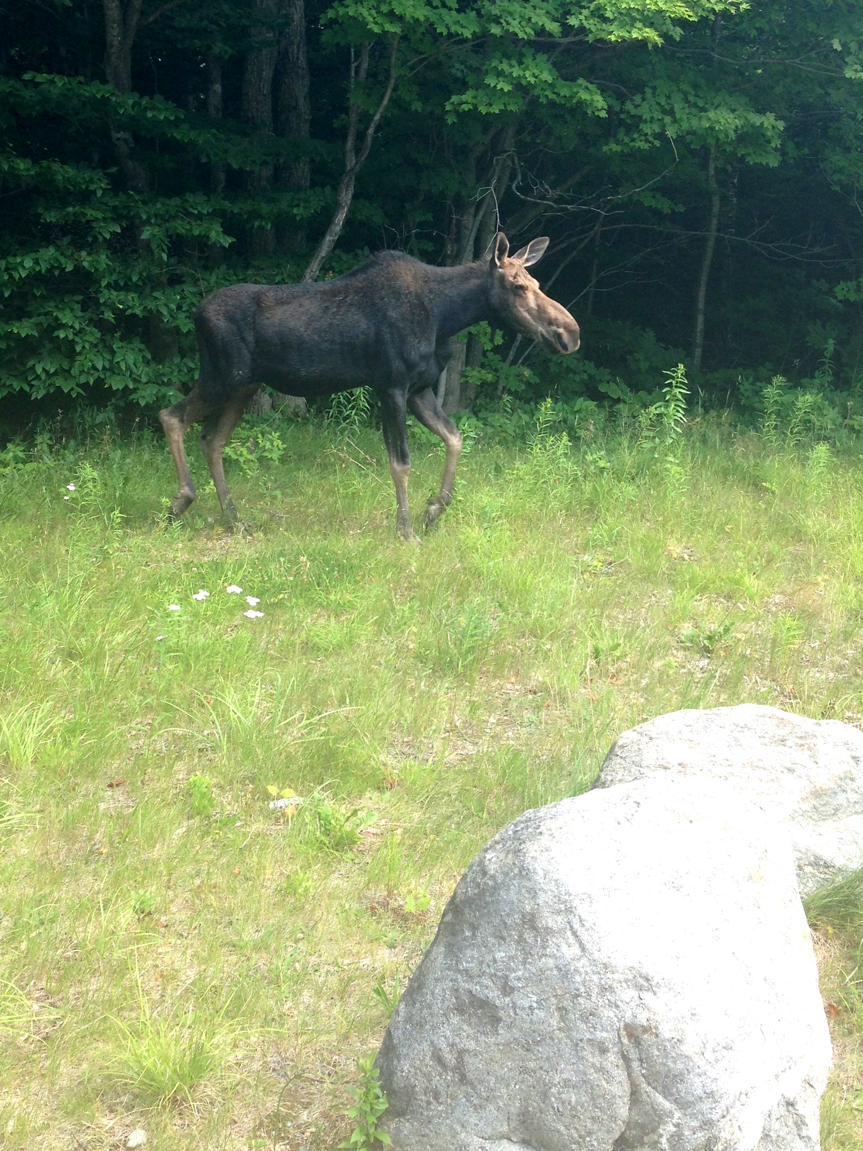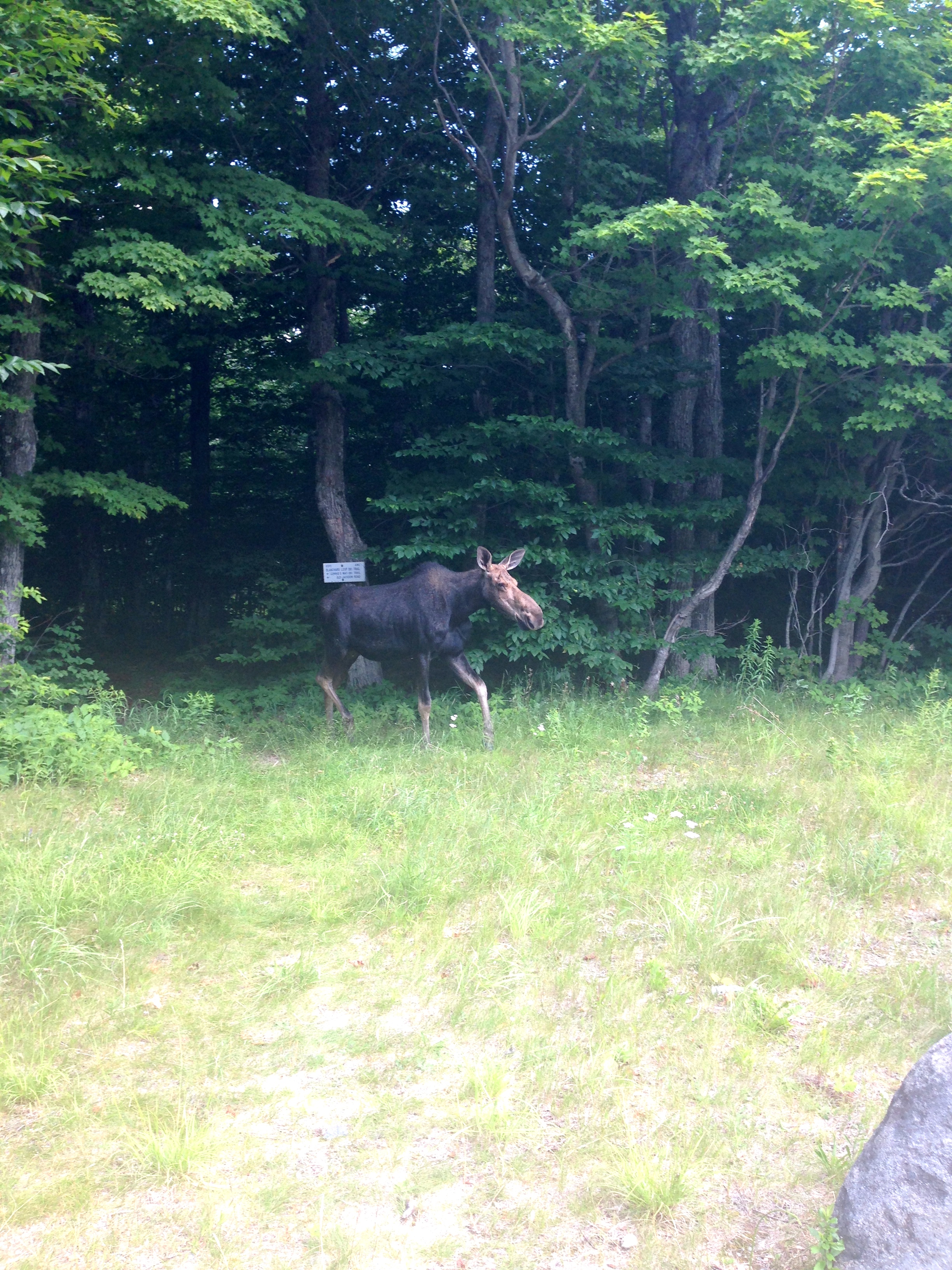 And now I have to share my favorite story of our trip. We pulled into the parking lot of the hiking trail we took and got the very last parking spot. All of a sudden this guy comes barreling out of the woods! I shouted “Holy SH*T that’s a MOOSE,” grabbed my phone, and ran out to grab some photos.