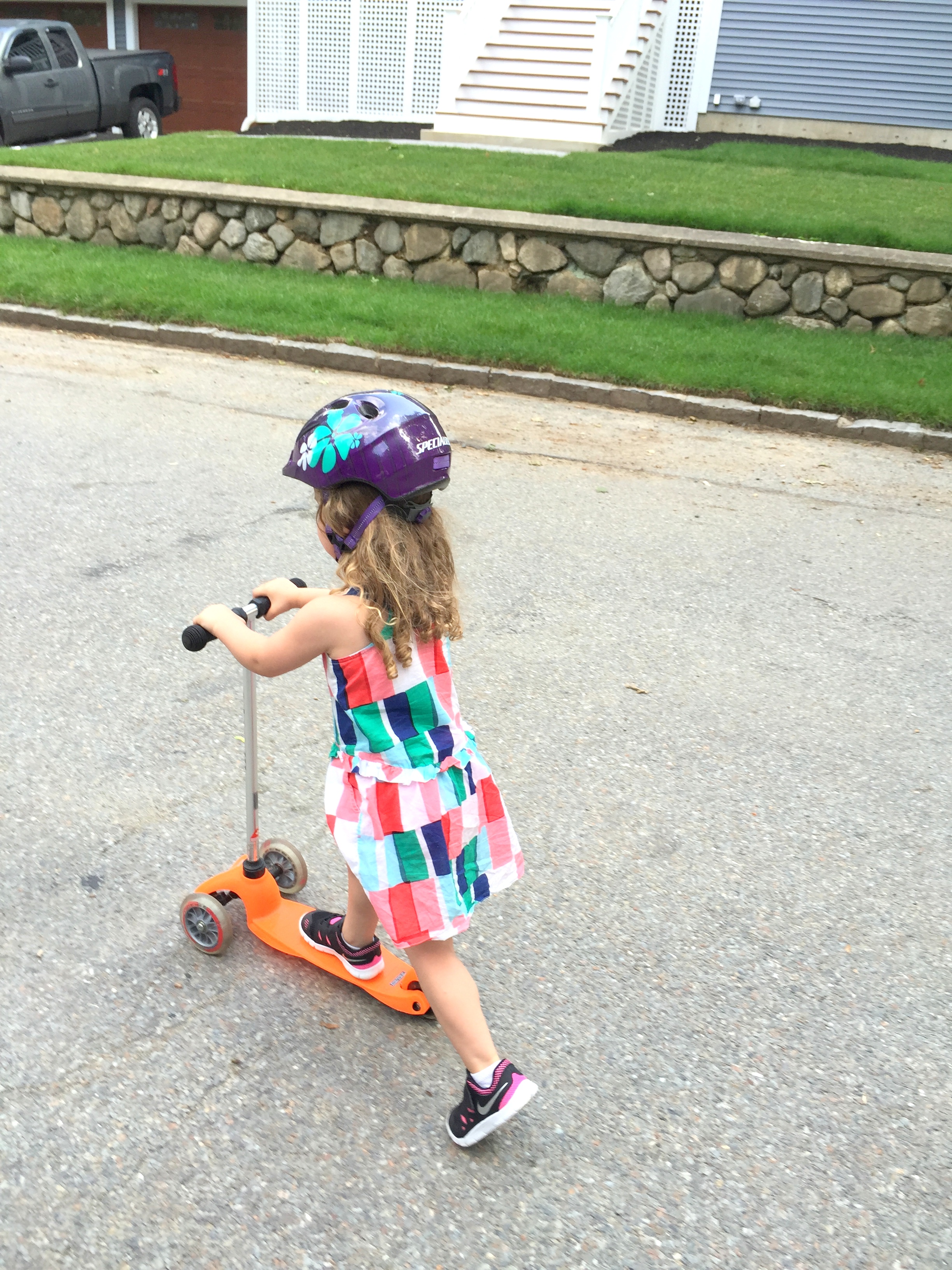 We’ve been doing lots of scoots and walks around the neighborhood to combat that evil late afternoon/pre-dinner insane time of day. She scoots while he…