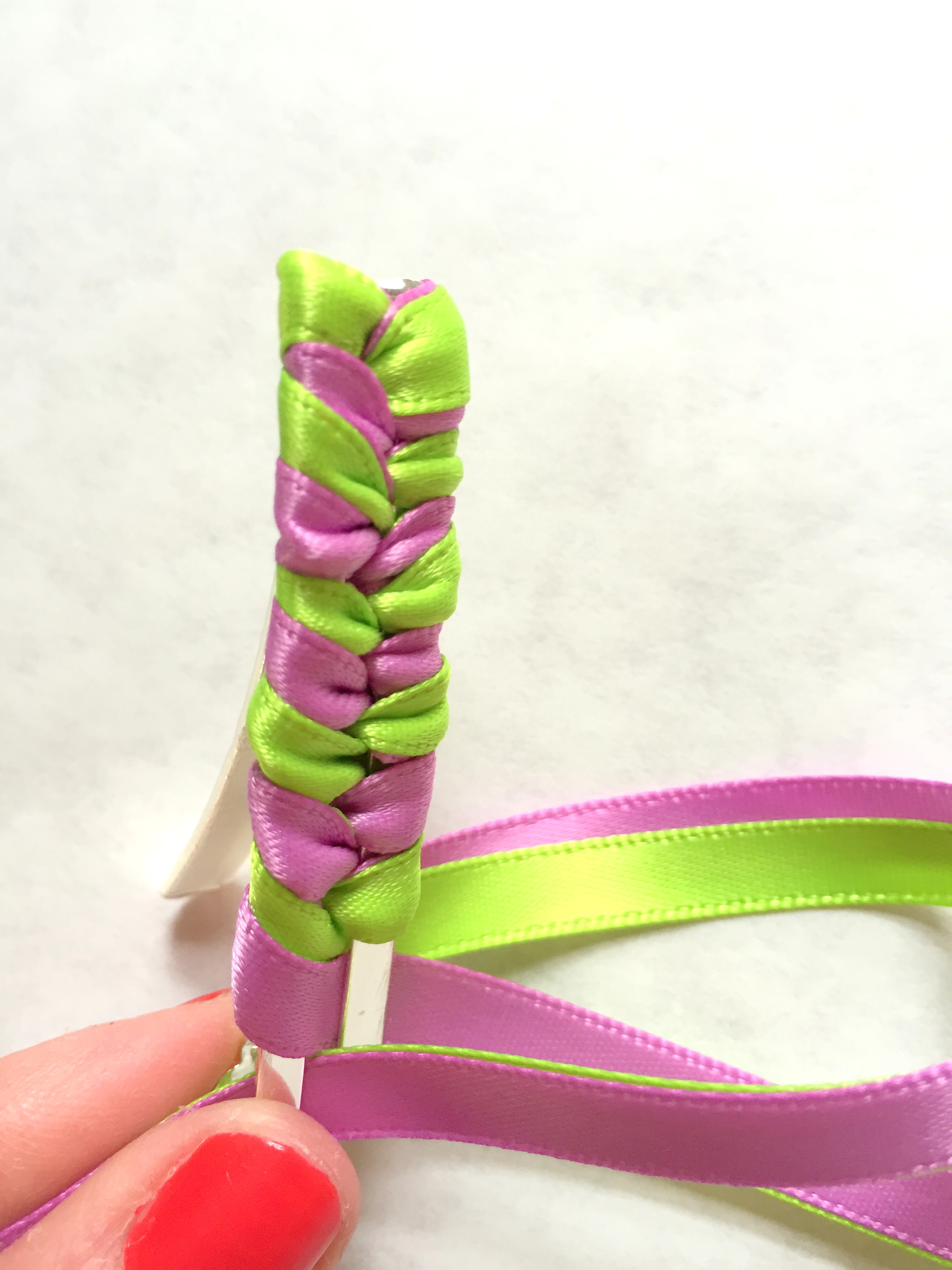 Tie in a knot at the end to secure in place and cut ribbon to desired length. So cute!