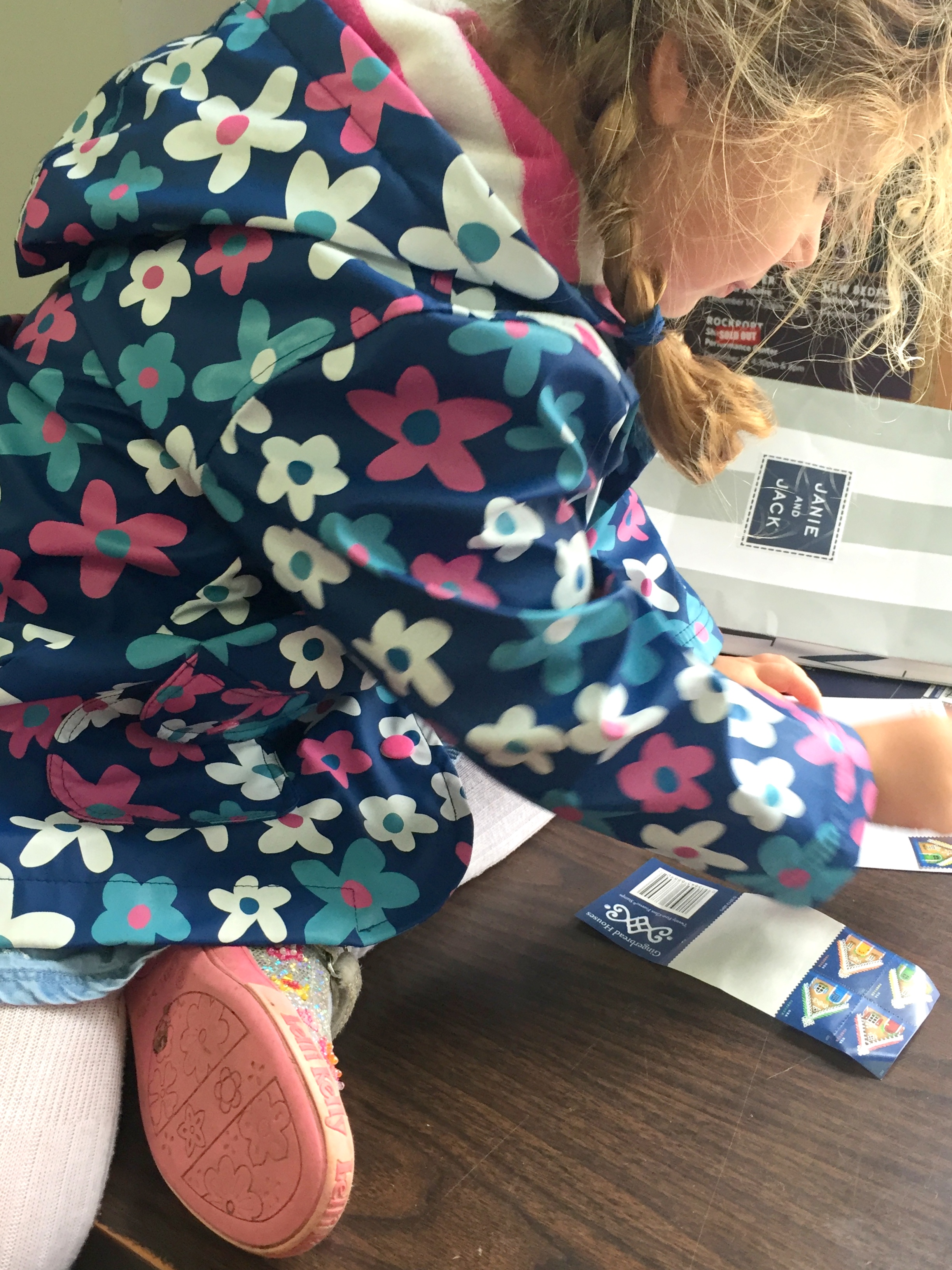 She helped me stamp and mail all of our Christmas cards this week (and took the job very seriously!).