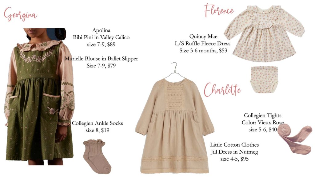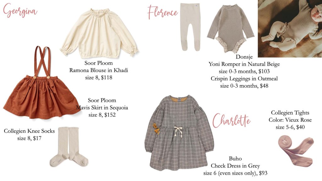 People often ask how does your personal styling service work? The answer is it’s totally customized to you; your needs, your occasion, your style. Here I presented a customer with a couple options of coordinating looks for her 3 daughters to wear in a family photo shoot in their kitchen. She told me the girls love pink, florals, simple prints and that for this photo she wanted the girls in neutral colors. Here are the 2 options of looks I presented to her – I send an image like what you see above along with a detailed outline of each piece, why I chose it and what makes it special.