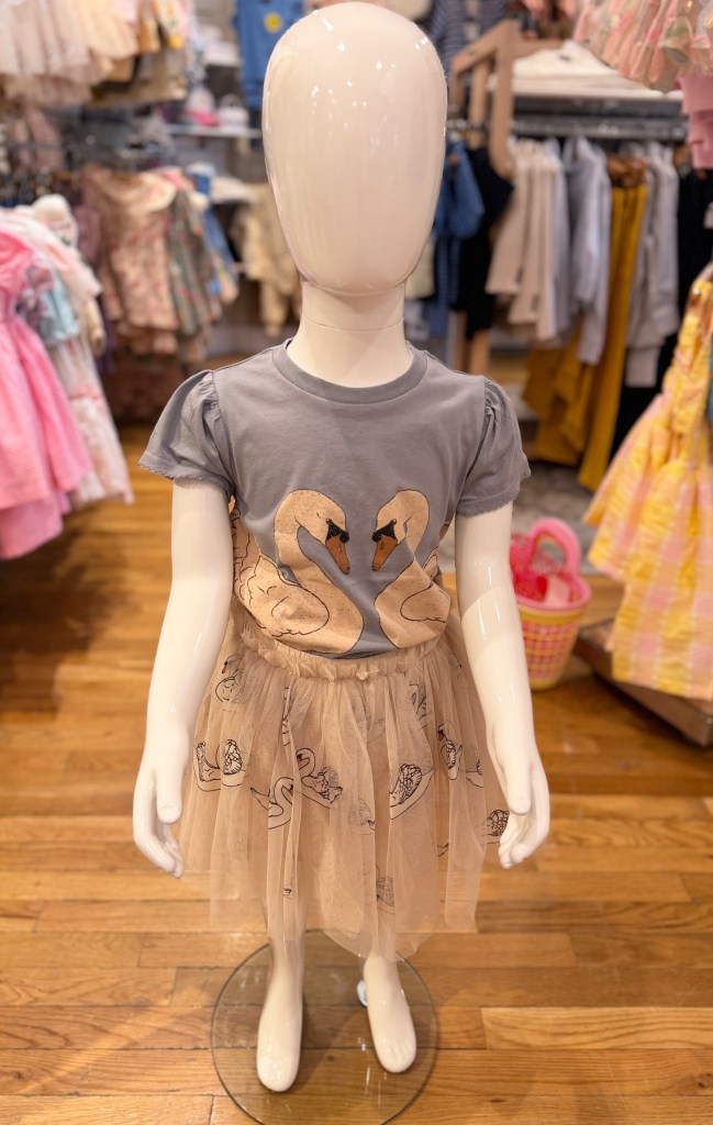 We are chock full of the most darling looks at both Fritz & Gigi and CouCou to dress your little one as the weather warms up. This swan look from Konges Slojd is so unique and special with the sweet little details, yet comfy and durable enough for every day. I shared a close-up of the details on my Instagram stories – the delicate stitching on the sleeves, puff sleeves, slight glitter on the swan on the skirt – so darling and makes this look so special.