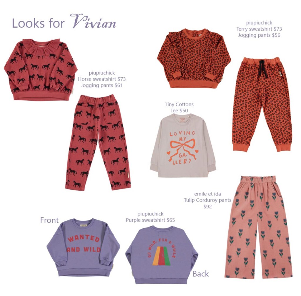 One of my little customers needed a fall refresh so I put a few looks together for her from CouCou. I just love how everything works together highlighting her love of purple and horses. I love knowing little traits like that about my customers so I can really pull pieces together that are irresistible!